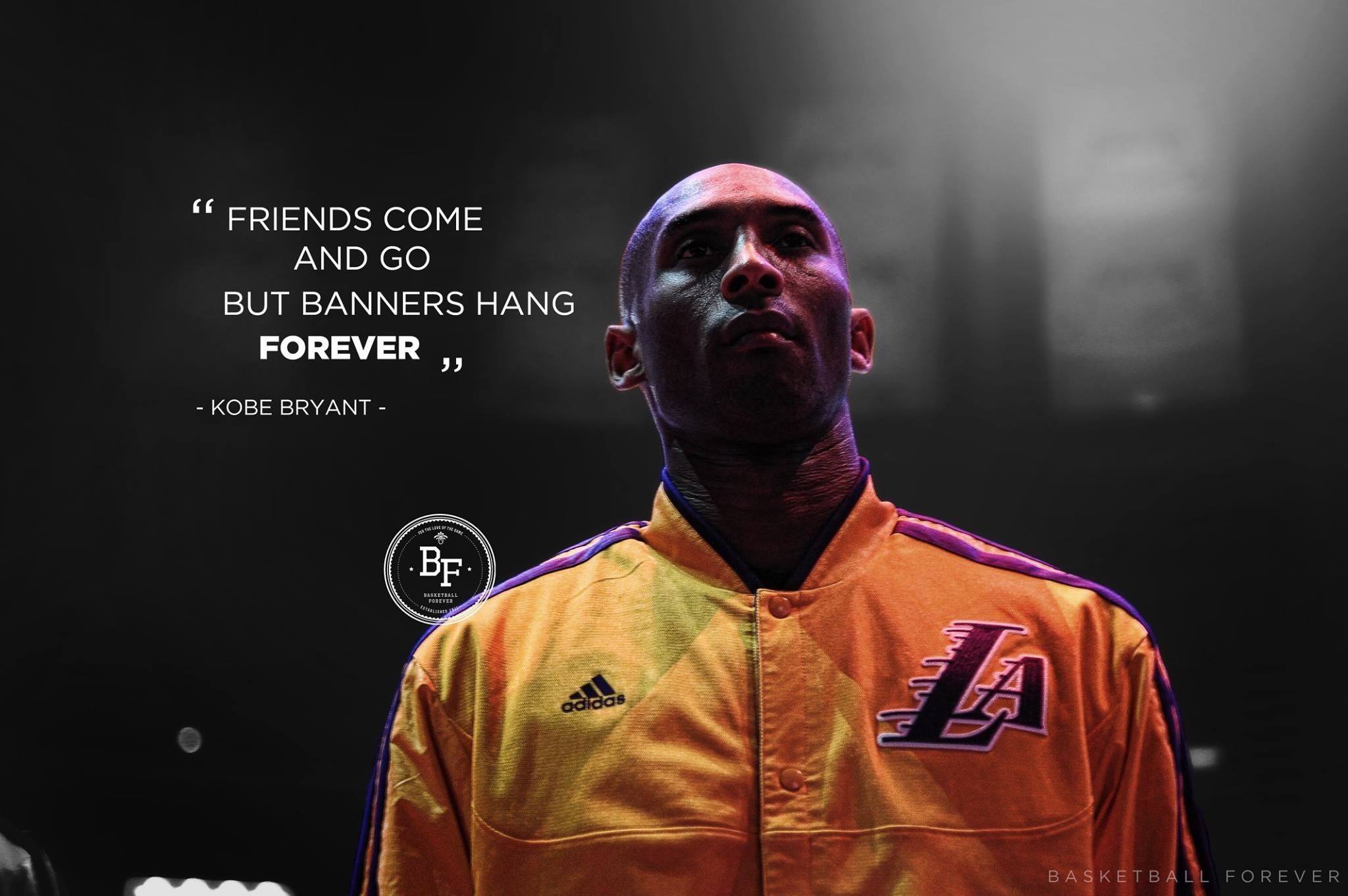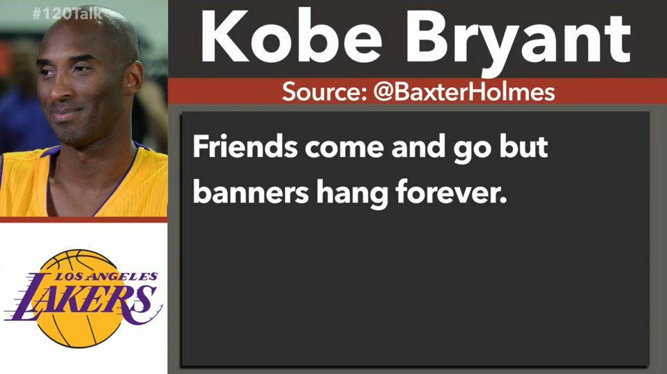 Friends come and go but banners hang forever. Last Wednesday night Kobe Bryant scored 60 points in his final professional NBA basketball game against the Utah Jazz. Several months before announcing his retirement Kobe Bryant talked to ESPNs Jemele Hill and said the most Kobe thing that he has ever said. Friends come and go but banners hang forever.